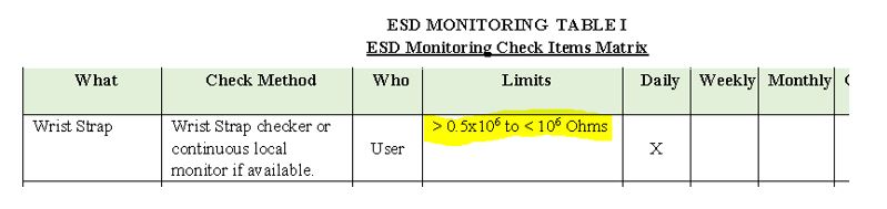 Below wrist strap test limit control appear in one of our customer(semiconductor) spec.